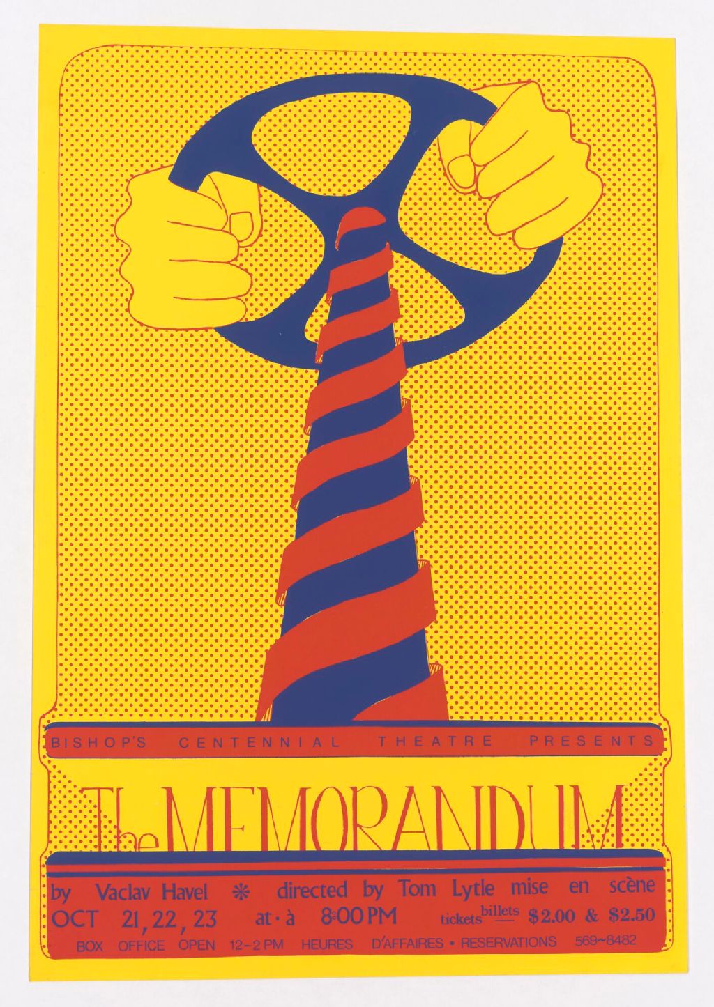 Bishop's Centennial Theatre presents The memorandum, by Vaclav Havel, directed by Tom Lytle...