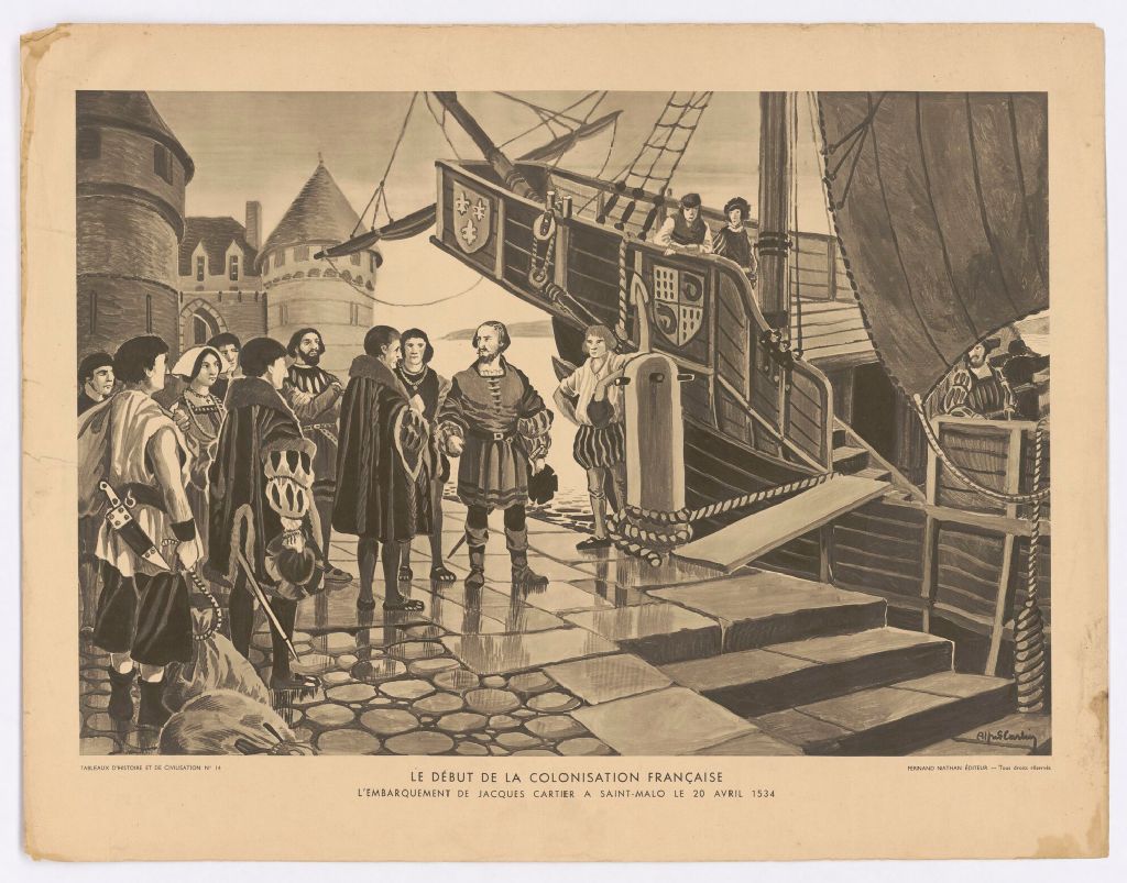 Tableaux d'histoire et de civilisation no 14 : le début de la colonisation française : l'embarquement de Jacques Cartier à Saint-Malo le 20 avril 1534