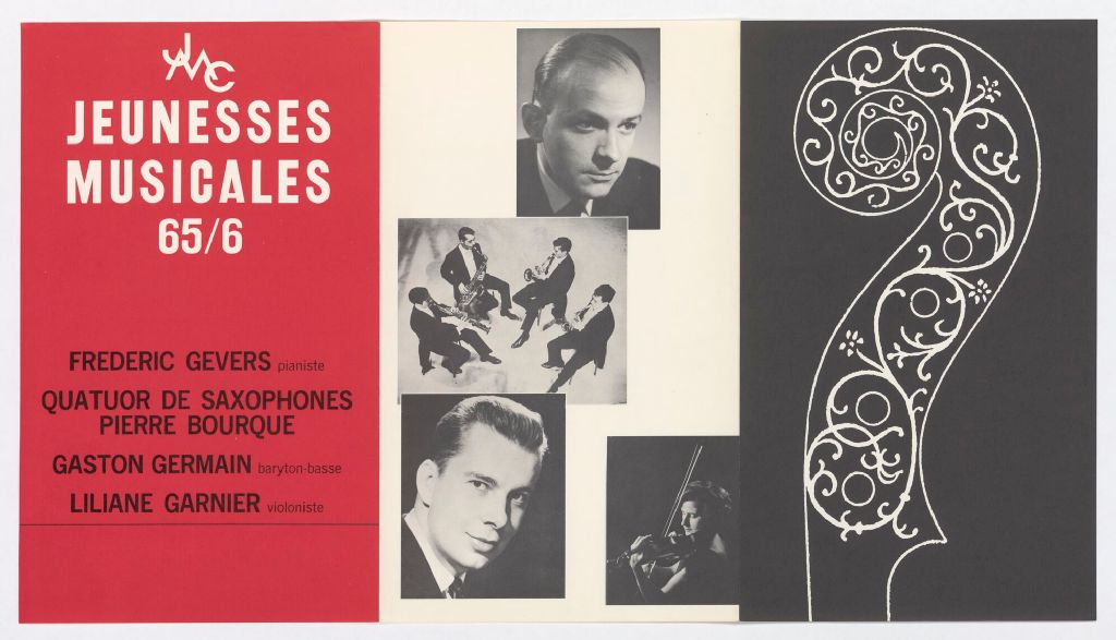 JMC, Jeunesses musicales 65/6 Frédéric Gevers pianiste, Quatuor de saxophones Pierre Bourque, Gaston Germain baryton-basse, Liliane Garnier violoniste