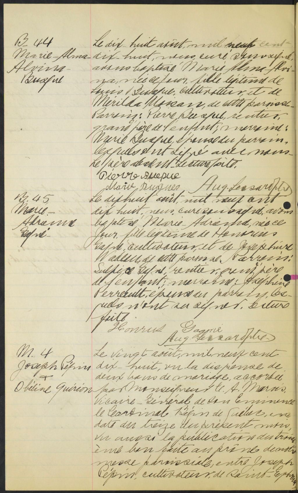 Saint-Gédéon-de-Beauce, 1899-1922, Archives nationales à Québec, Fonds Cour supérieure. District judiciaire de Beauce. État civil, (03Q,CE306,S13).