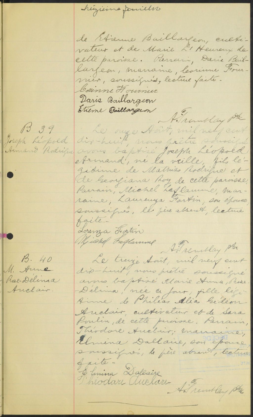 Sainte-Rose-de-Watford, 1894-1922, Archives nationales à Québec, Fonds Cour supérieure. District judiciaire de Beauce. État civil, (03Q,CE306,S29).