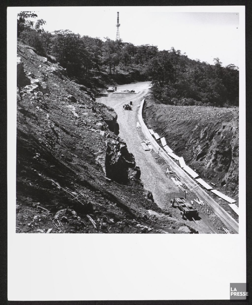 - Le dossier illustre principalement les travaux d'aménagement de la voie Camillien-Houde sur le mont Royal, certains documents montrent des travailleurs avec la ville en arrière-plan. Une photographie offre une vue aérienne sur laquelle on aperçoit la base militaire du Royal Canadian Hussars.