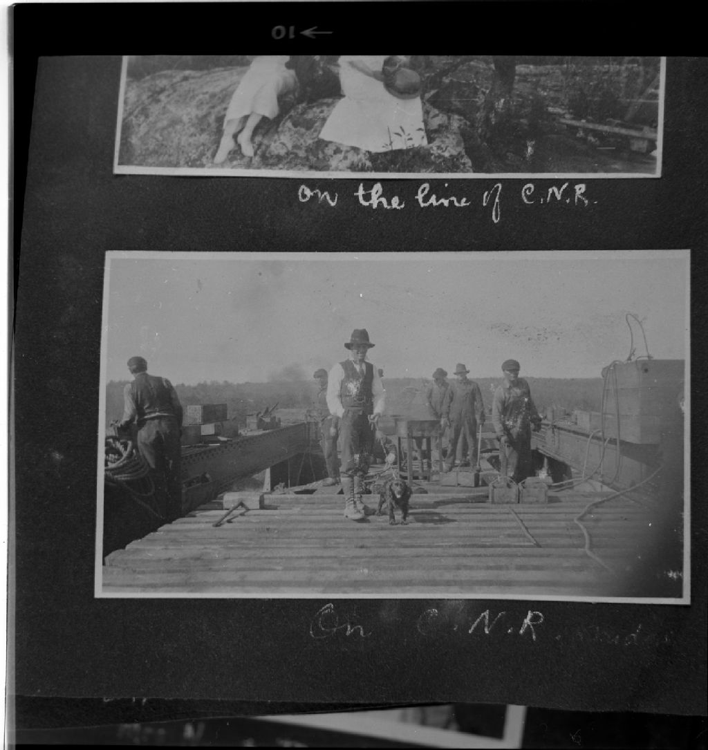 Ouvriers de la construction sur le pont ferroviaire du Canadian National Railway près de Portage-du-Fort