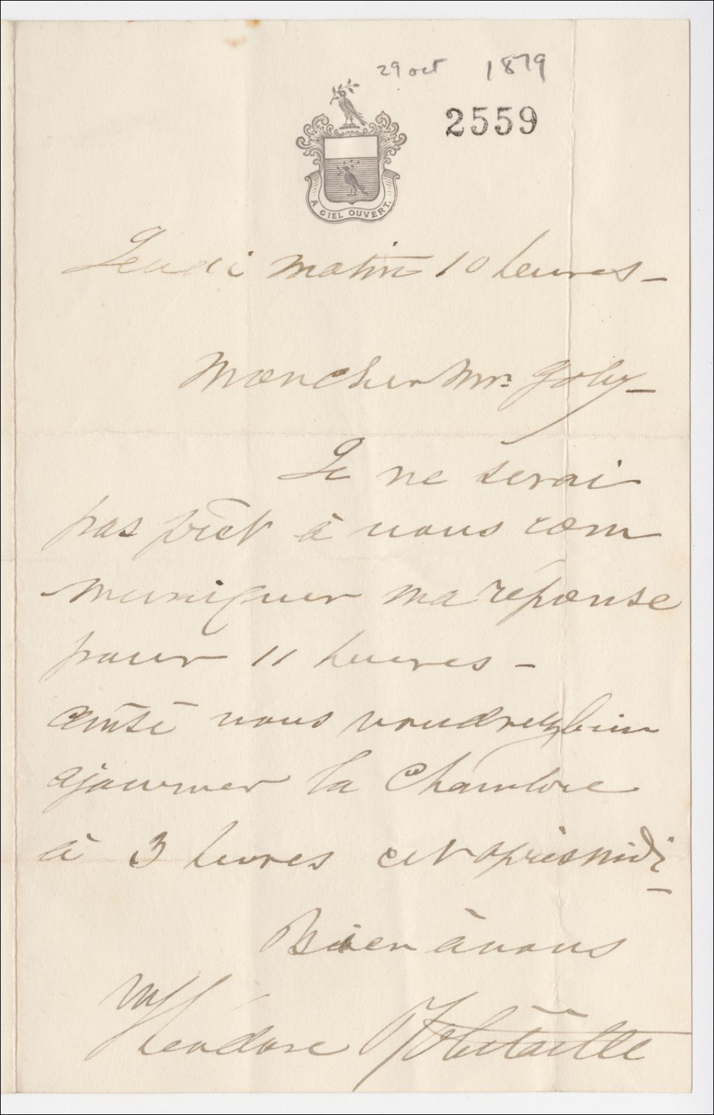 Lettre de Théodore Robitaille à Henri-Gustave Joly