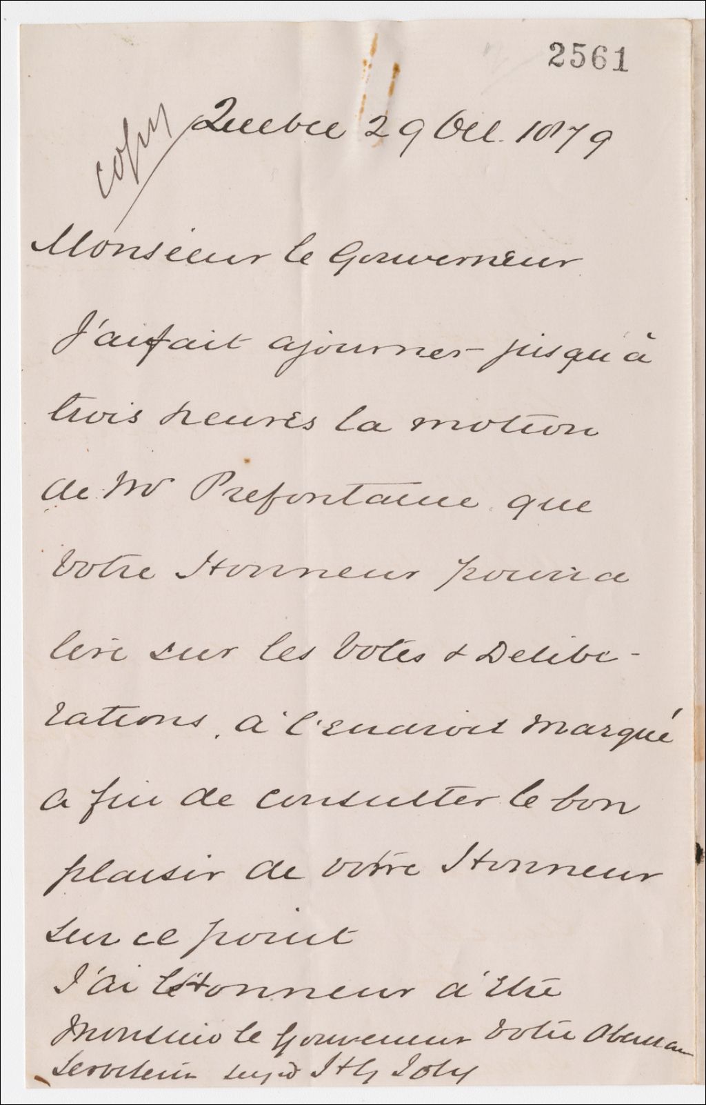 Copie de lettre de Henri-Gustave Joly à Théodore Robitaille