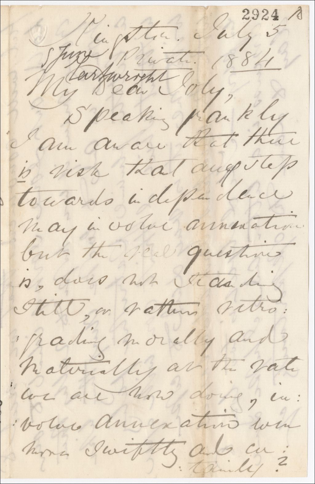 Lettre de R. J. Cartwright à Henri-Gustave Joly
