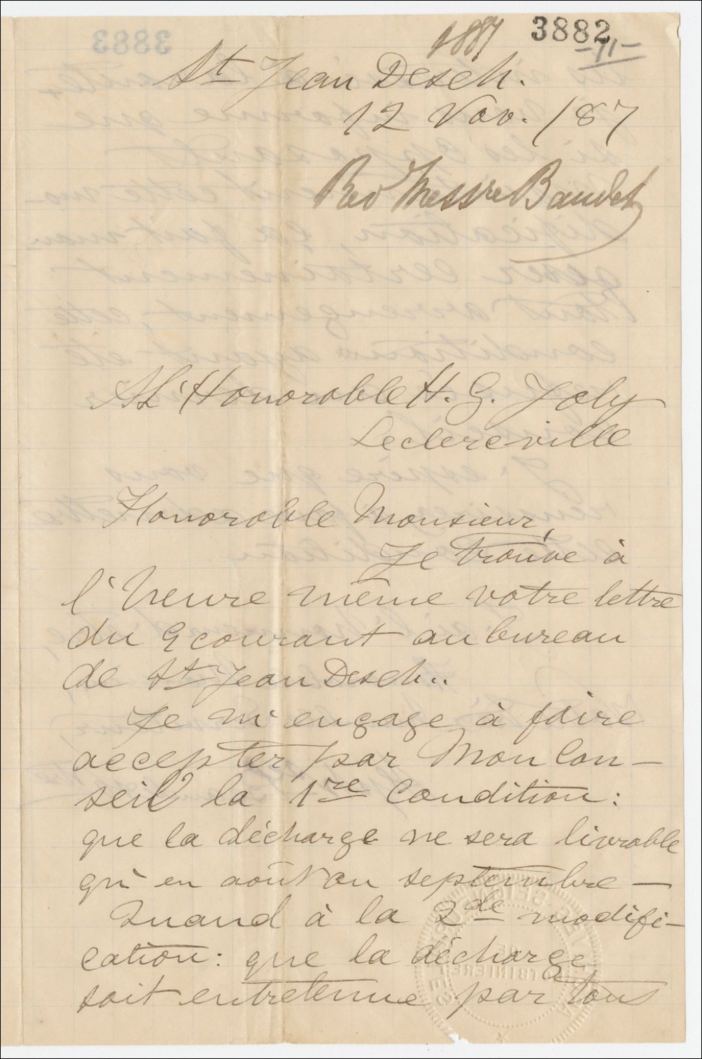 Lettre d'Alphonse Beaudet, prêtre, à Henri-Gustave Joly