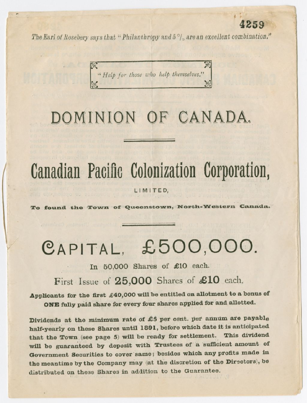 - Prospectus de la Canadian Pacific Colonization Corporation, Ltd