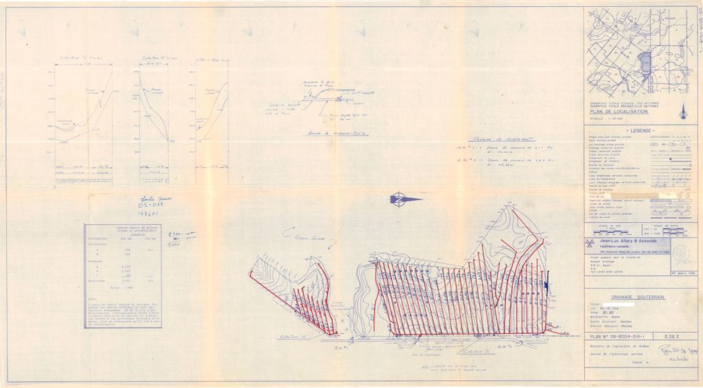 Plan de drainage souterrain annoté pour la municipalité de Quyon, comté de Pontiac. Préparé pour le compte du Ministère de l¿Agriculture du Québec.