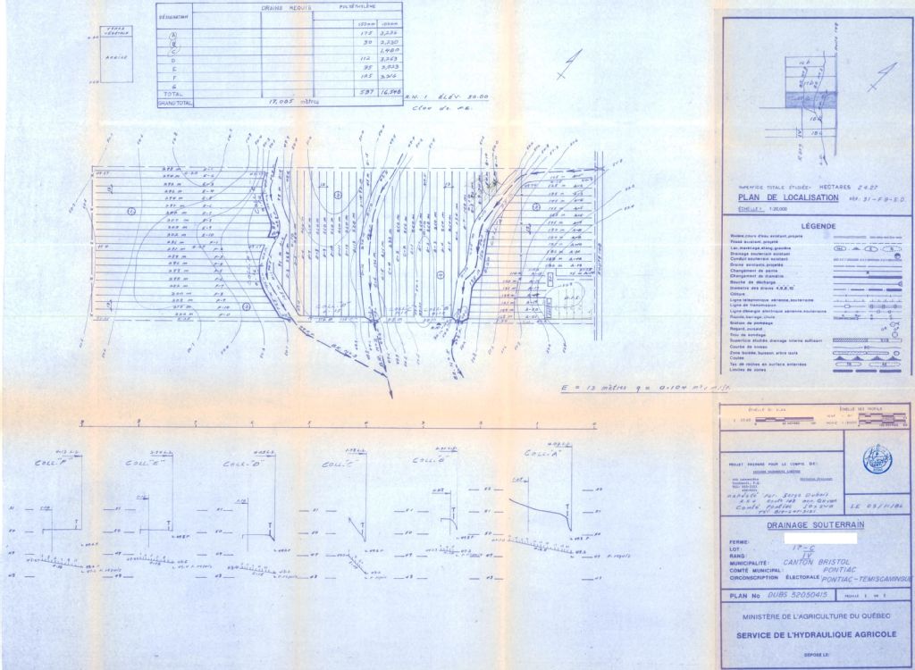Plan de drainage souterrain pour la municipalité du canton de Bristol, comté de Pontiac. Préparé pour le compte du Ministère de l¿Agriculture du Québec.