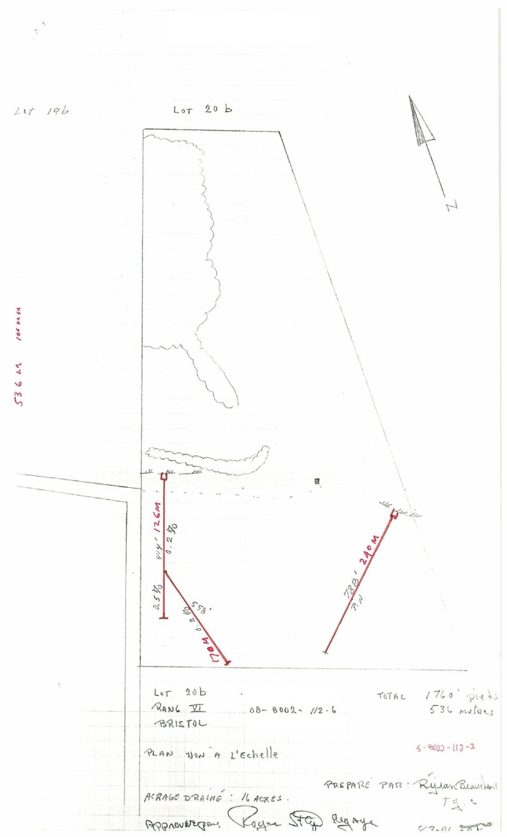 Plan de drainage souterrain annoté pour la municipalité du canton de Bristol, comté de Pontiac. Préparé pour le compte du Ministère de l¿Agriculture du Québec.