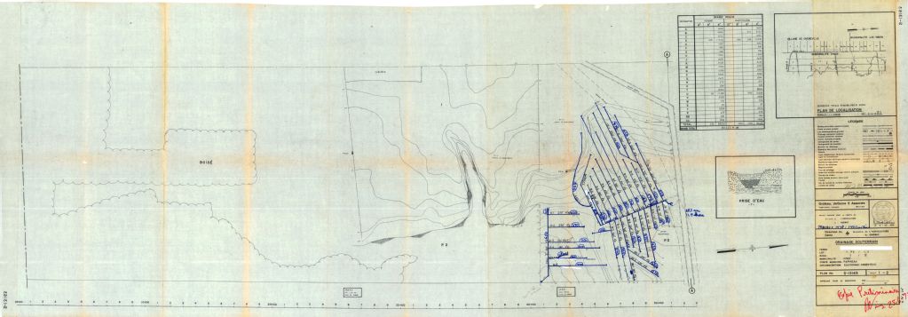 Plan de drainage souterrain annoté pour la municipalité de Vinoy, comté de Papineau. Préparé pour le compte du Ministère de l¿Agriculture du Québec.
