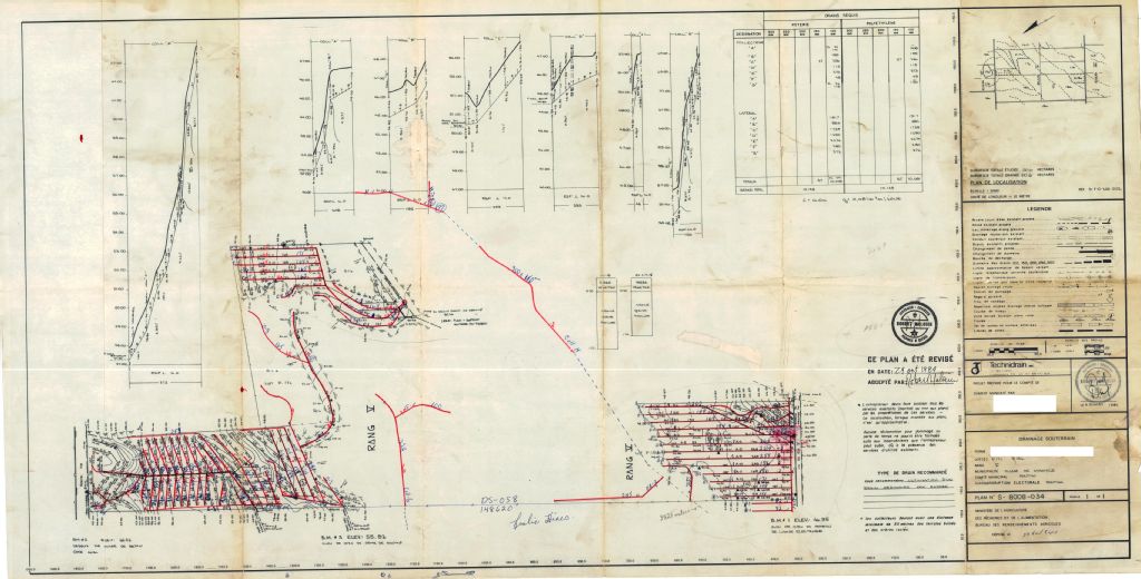 Plan de drainage souterrain annoté pour la municipalité de Shawville, comté de Pontiac. Préparé pour le compte du Ministère de l¿Agriculture, des Pêcheries et de l'Alimentation du Québec.