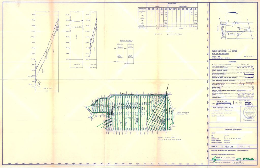 Plan de drainage souterrain annoté pour la municipalité de Masson, comté de Papineau. Préparé pour le compte du Ministère de l¿Agriculture, des Pêcheries et de l'Alimentation du Québec.