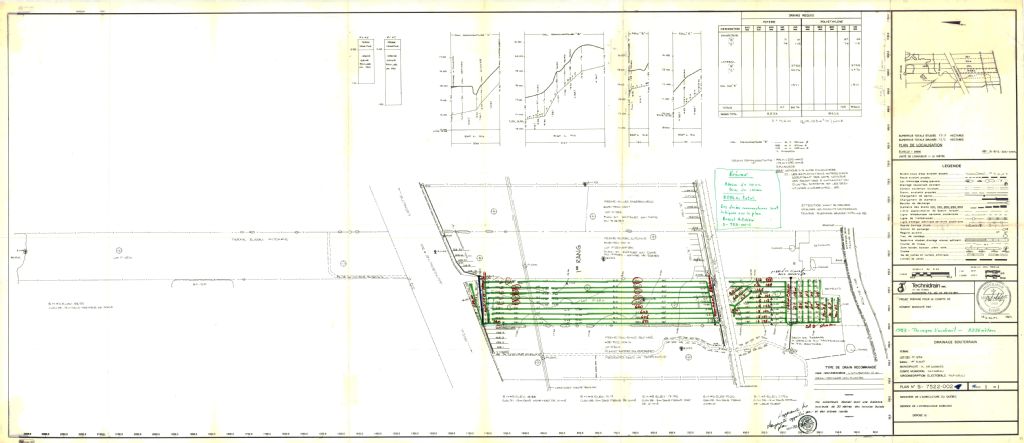 Plan de drainage souterrain annoté pour la municipalité d'Angers, comté de Papineau. Préparé pour le compte du Ministère de l¿Agriculture du Québec.