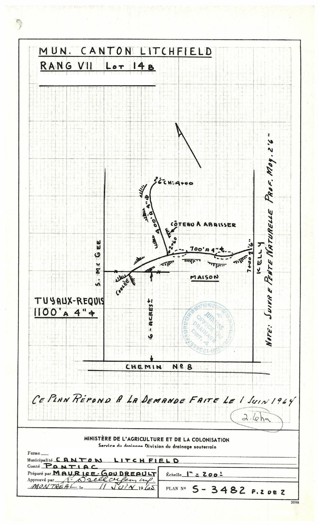 Plan de drainage souterrain pour la municipalité du canton de Litchfield, comté de Pontiac. Préparé pour le compte du Ministère de l¿Agriculture et de la Colonisation du Québec.