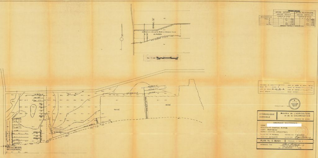 Plan de drainage souterrain pour la municipalité du canton de Ripon, comté de Papineau. Préparé pour le compte du Ministère de l¿Agriculture et de la Colonisation du Québec.