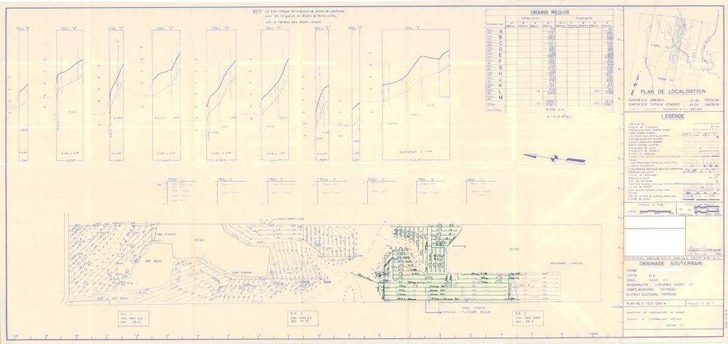 Plan de drainage souterrain annoté pour la municipalité du Canton de Lochaber, comté de Papineau. Préparé pour le compte du Ministère de l¿Agriculture du Québec.