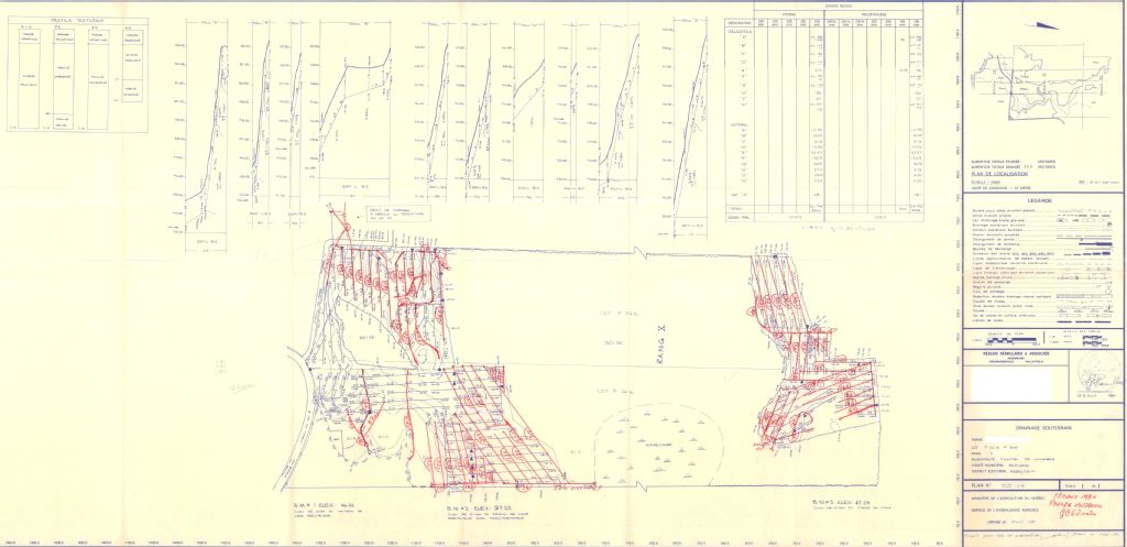 Plan de drainage souterrain annoté pour la municipalité du Canton de Lochaber, comté de Papineau. Préparé pour le compte du Ministère de l¿Agriculture du Québec.