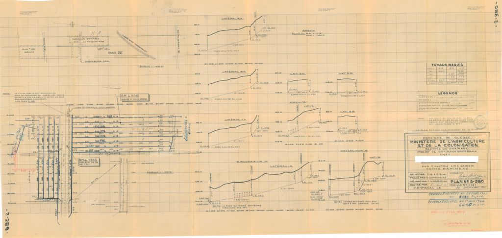 Plan de drainage souterrain annoté pour la municipalité du canton de Lochaber, comté de Papineau. Préparé pour le compte du Ministère de l¿Agriculture et de la Colonisation du Québec.