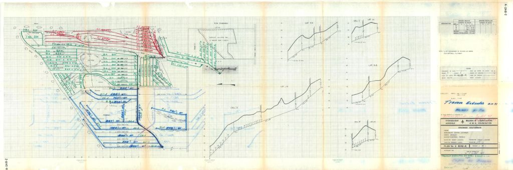 Plan de drainage souterrain annoté pour la municipalité du canton de Lochaber, comté de Papineau. Préparé pour le compte du Ministère de l¿Agriculture et de la Colonisation du Québec.