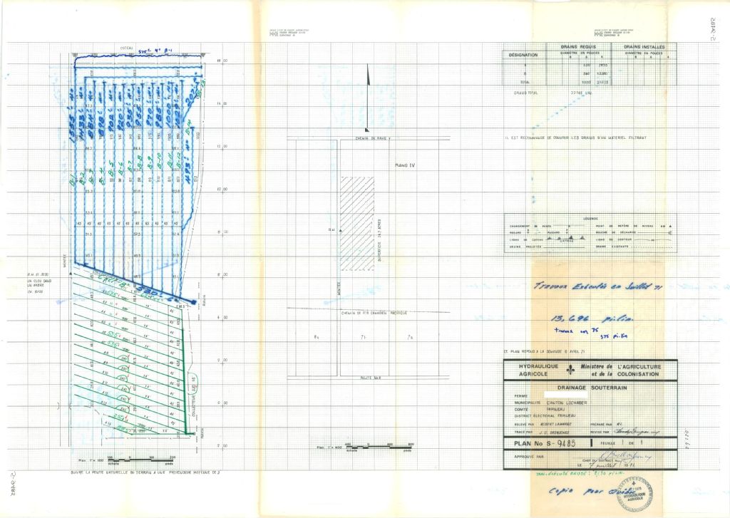 Plan de drainage souterrain annoté pour la municipalité du canton de Lochaber, comté de Papineau. Préparé pour le compte du Ministère de l¿Agriculture et de la Colonisation du Québec.