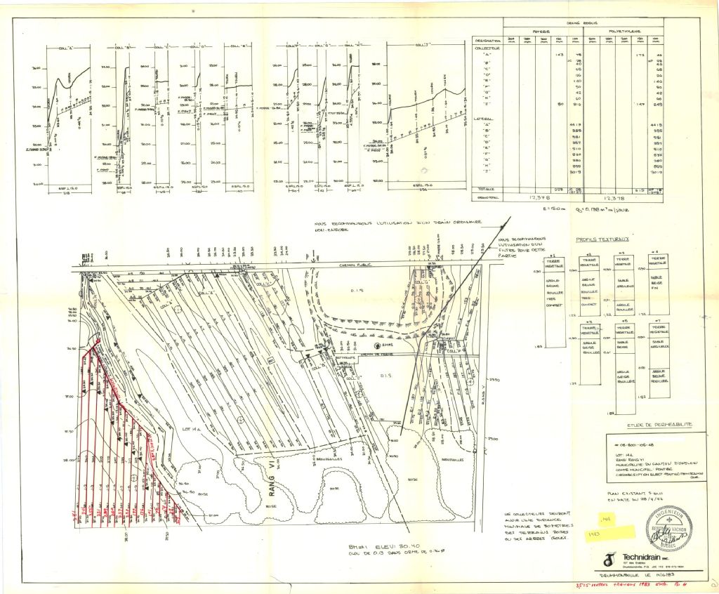 Plan de drainage souterrain (étude de perméabilité) annoté pour la municipalité du canton d'Onslow, comté de Pontiac. Préparé pour le compte du Ministère de l¿Agriculture du Québec.
