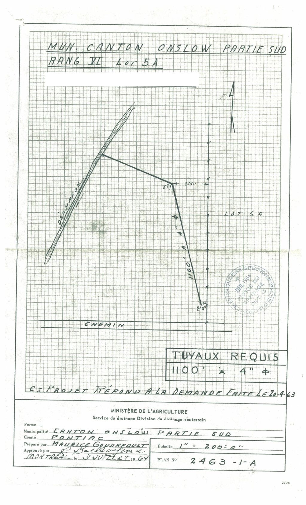 Plan de drainage souterrain pour la municipalité du canton d'Onslow (partie sud), comté de Pontiac. Préparé pour le compte du Ministère de l¿Agriculture du Québec.