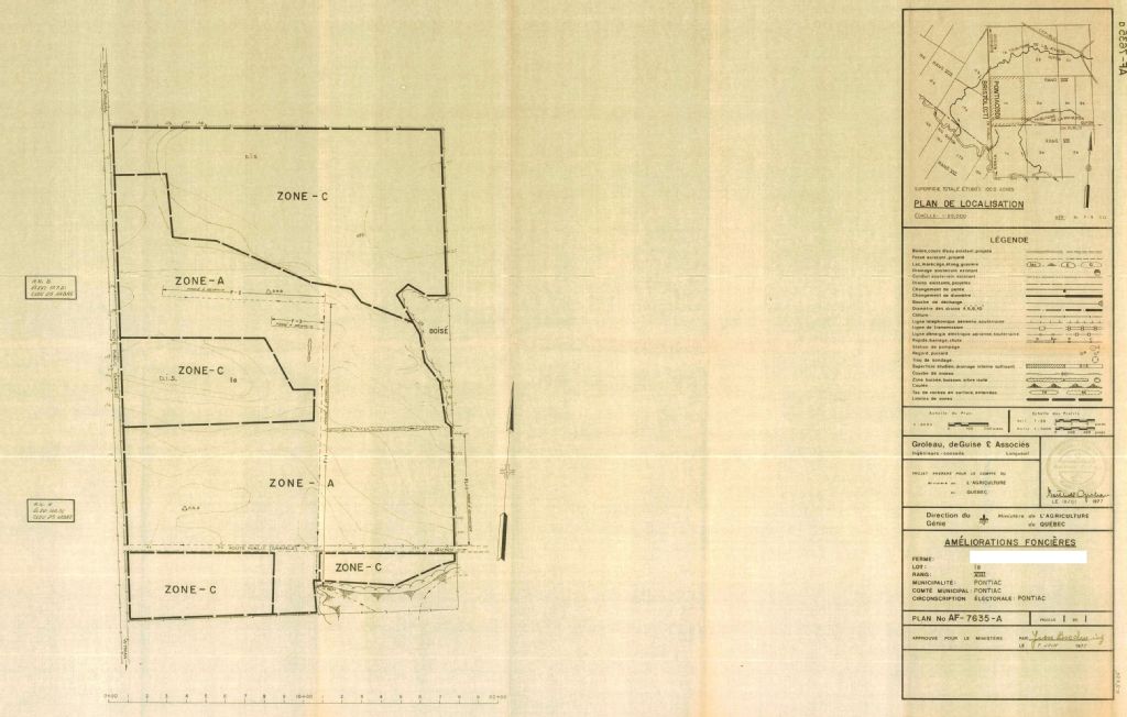 Plan d'améliorations foncières pour la municipalité de Pontiac. Préparé pour le compte du Ministère de l¿Agriculture du Québec.