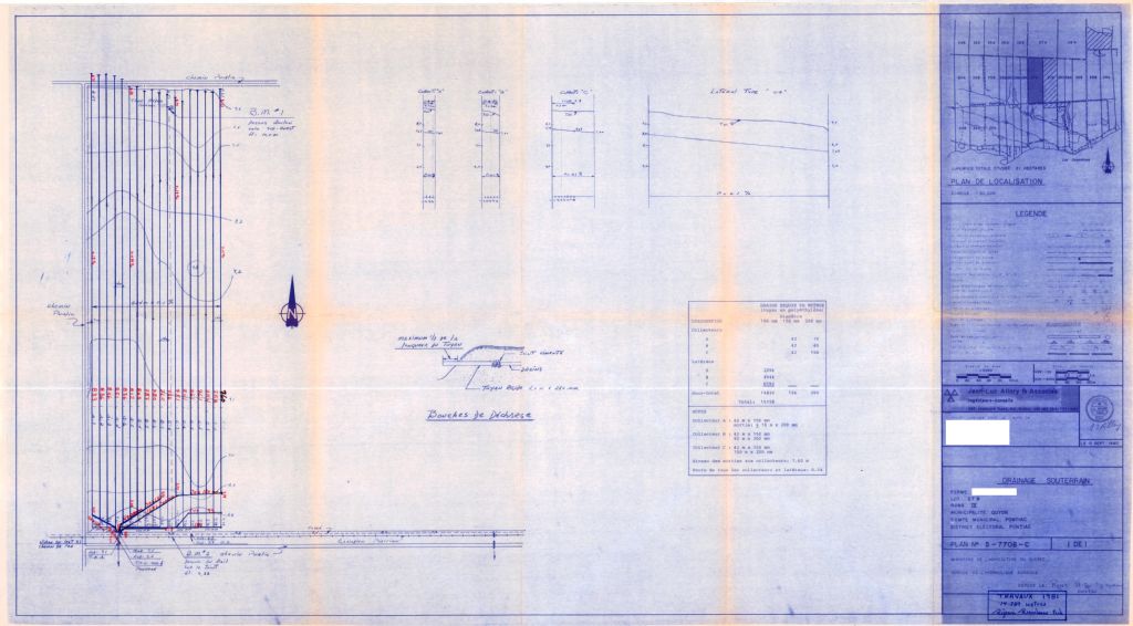 Plan de drainage souterrain annoté pour la municipalité de Quyon, comté de Pontiac. Préparé pour le compte du Ministère de l¿Agriculture du Québec.