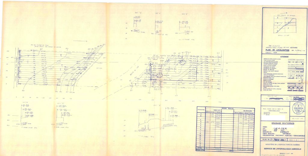 Plan de drainage souterrain pour la municipalité du canton d'Eardley, comté de Pontiac. Préparé pour le compte du Ministère de l¿Agriculture du Québec.