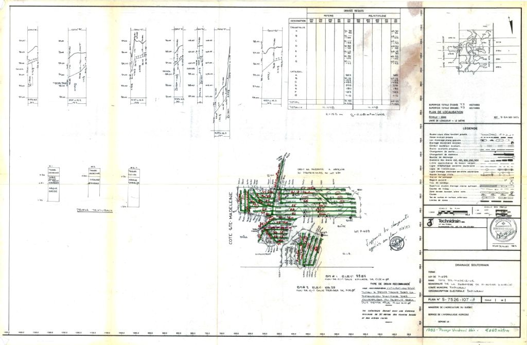 Plan de drainage souterrain annoté pour la municipalité de St-André-Avellin, comté de Papineau. Préparé pour le compte du Ministère de l¿Agriculture du Québec.