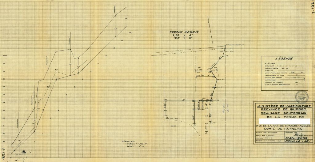 Plan de drainage souterrain pour la municipalité de St-André-Avellin, comté de Papineau. Préparé pour le compte du Ministère de l¿Agriculture du Québec.