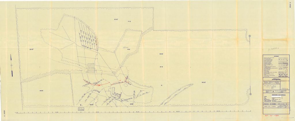 Plan de drainage souterrain annoté pour la municipalité du canton de Low, comté de Gatineau. Préparé pour le compte du Ministère de l¿Agriculture du Québec.