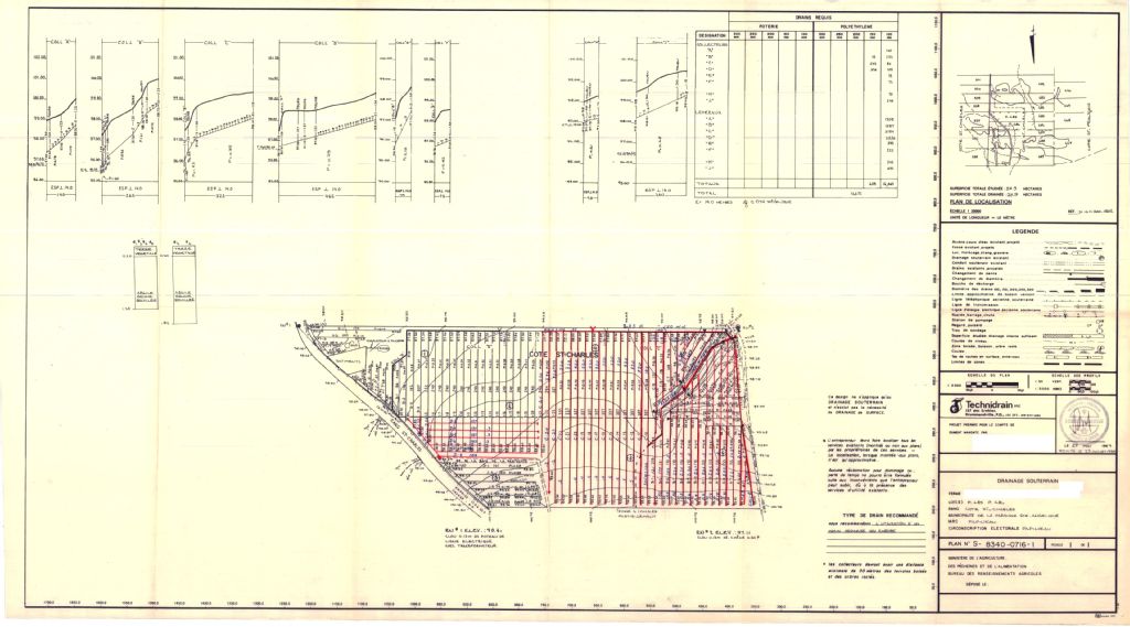 Plan de drainage souterrain annoté pour la paroisse Ste-Angélique, comté de Papineau. Préparé pour le compte du Ministère de l¿Agriculture, des Pêcheries et de l'Alimentation du Québec.