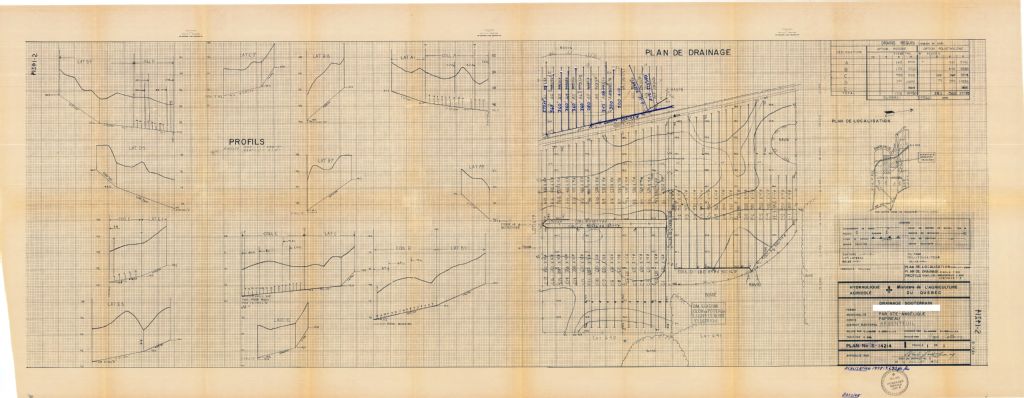 Plan de drainage souterrain annoté pour la paroisse Ste-Angélique, comté de Papineau. Préparé pour le compte du Ministère de l¿Agriculture du Québec.