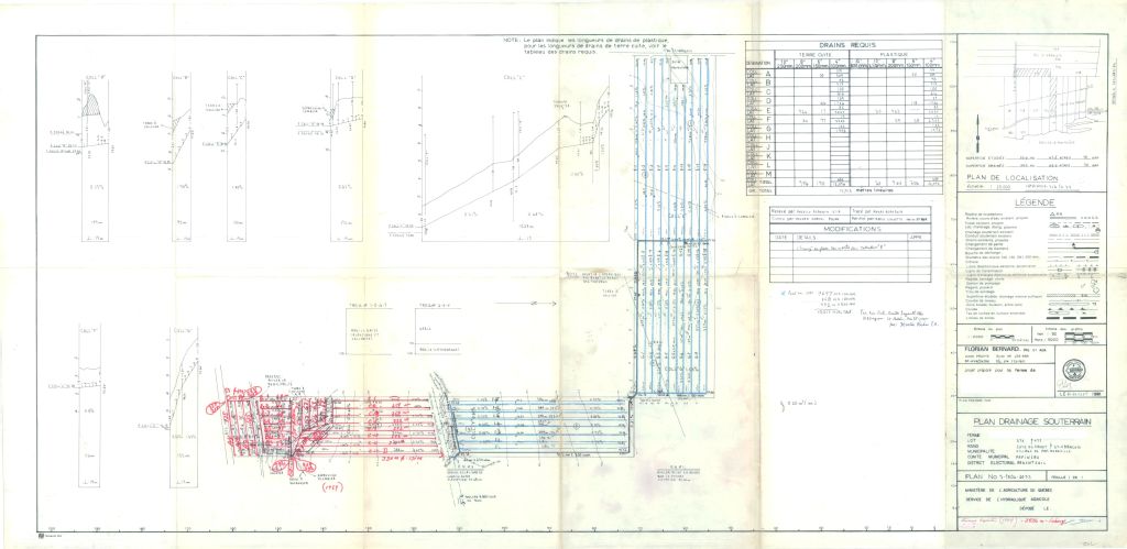 Plan de drainage souterrain annoté pour la municipalité de Papineauville, comté de Papineau. Préparé pour le compte du Ministère de l¿Agriculture du Québec.