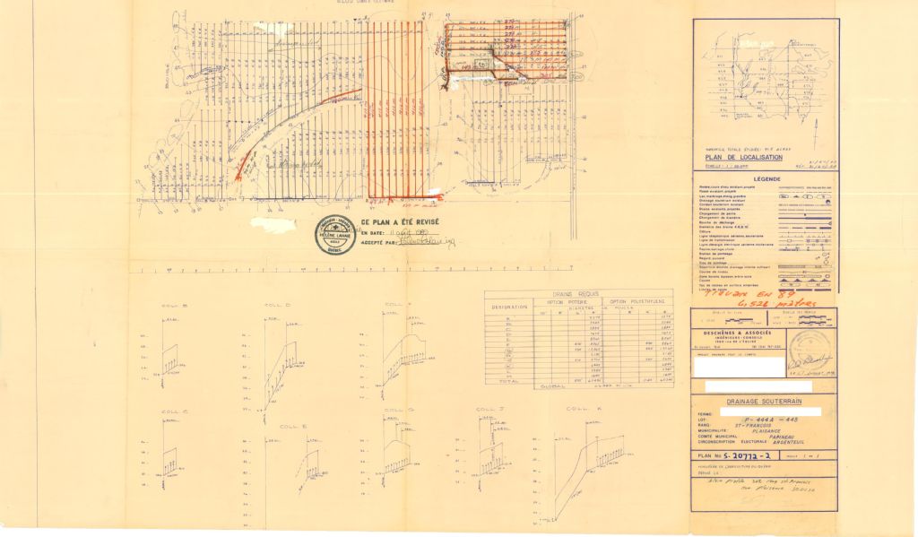 Plan de drainage souterrain annoté pour la municipalité de Plaisance, comté de Papineau. Préparé pour le compte du Ministère de l¿Agriculture du Québec.