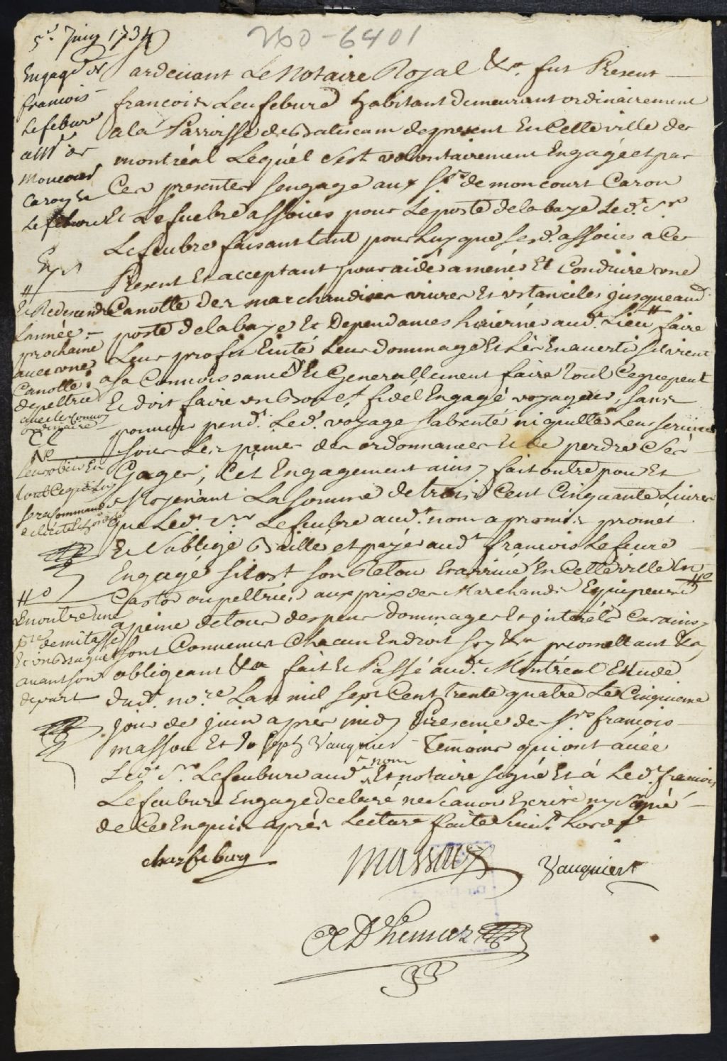 Jean-Baptiste Adhémar dit Saint-Martin, 1714-1754, Archives nationales à Montréal, Fonds Cour supérieure. District judiciaire de Montréal. Greffes de notaires, (06M,CN601,S3).