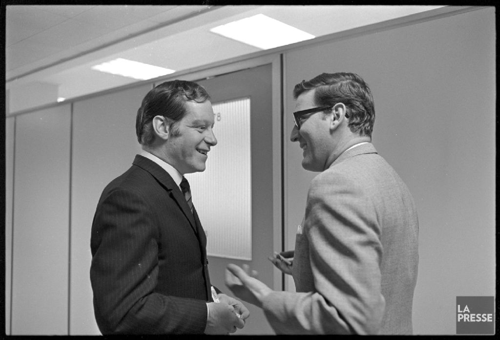 - Le dossier porte sur les reportages intitulés : Comparution de Pierre Bourgault à la cour municipale ; Remise du trophée "Tour du chapeau" de la brasserie Dow à André Corriveau ; Service de l'informatique de la Commission des écoles catholiques de Montréal (CECM). Les documents montrent, entre autres, Maurice Richard et André Gagnon, président de la CECM