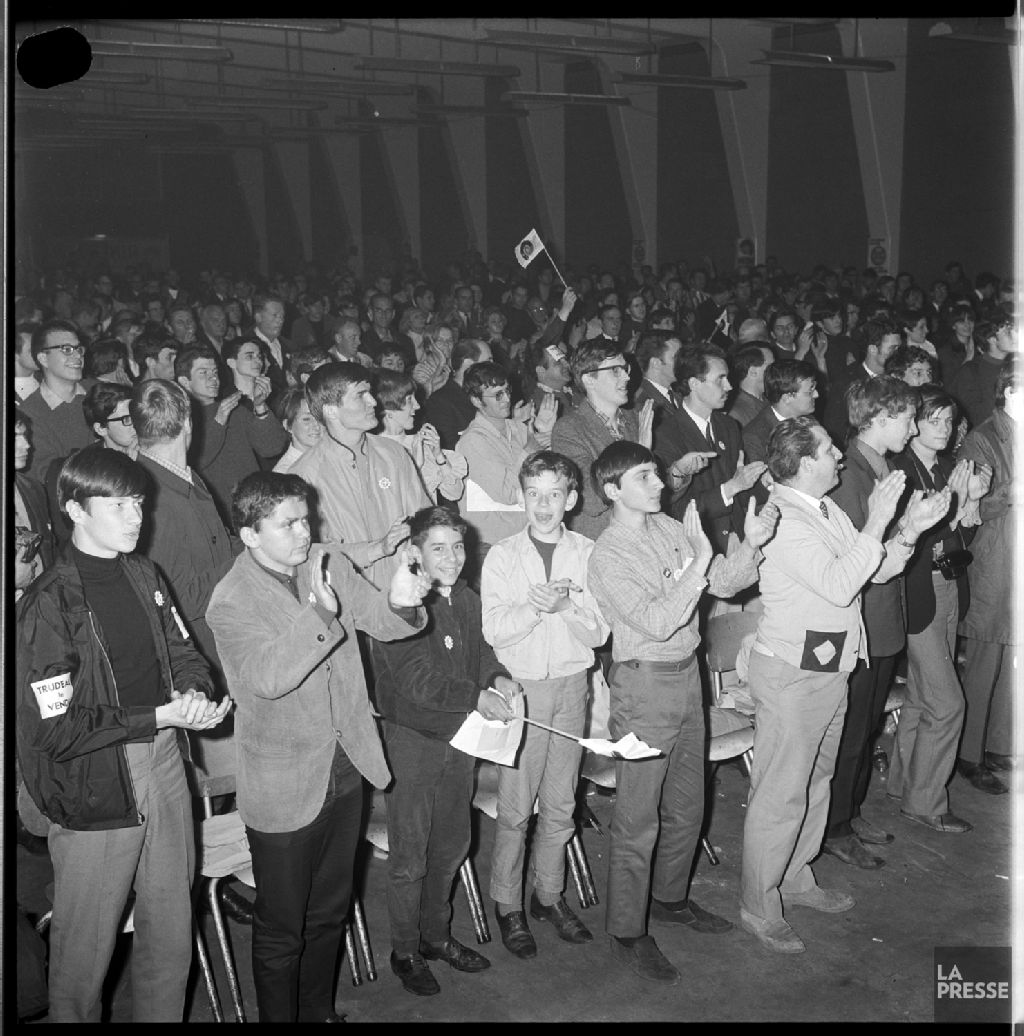 - Le dossier porte sur les reportages intitulés : Assemblée du Rassemblement pour l'indépendance nationale (RIN) avec Pierre Bourgault ; Partie de crosse ; Arrestation du président de l'Union générale des étudiants du Québec (UGEQ) ; Manifestation pro-Trudeau ; Enfants abandonnés. On voit notamment une personne tenant une pancarte "Harmonisons avec Trudeau" et une affiche "Michel Blanchard".