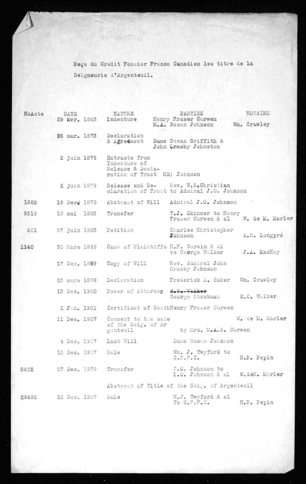 Listes de titres de la seigneurie (1863-1907)