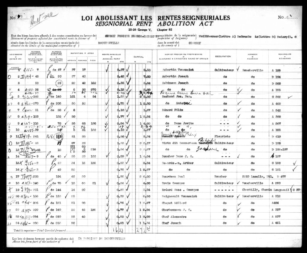 Terriers de rentes constituées pour les municipalités de Saint-Hubert et Boucherville