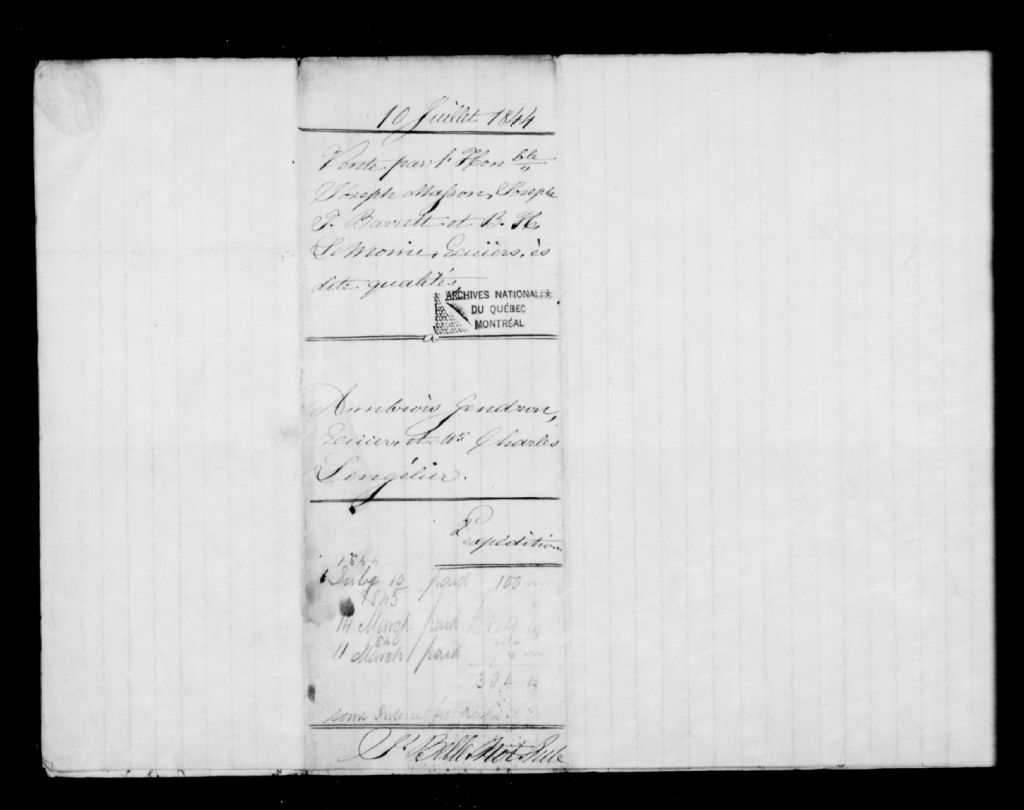 Notaire J. Belle, 1844-1846, Archives nationales à Montréal, Fonds Joseph-Toussaint Drolet, (06M,P4,S2,D1).