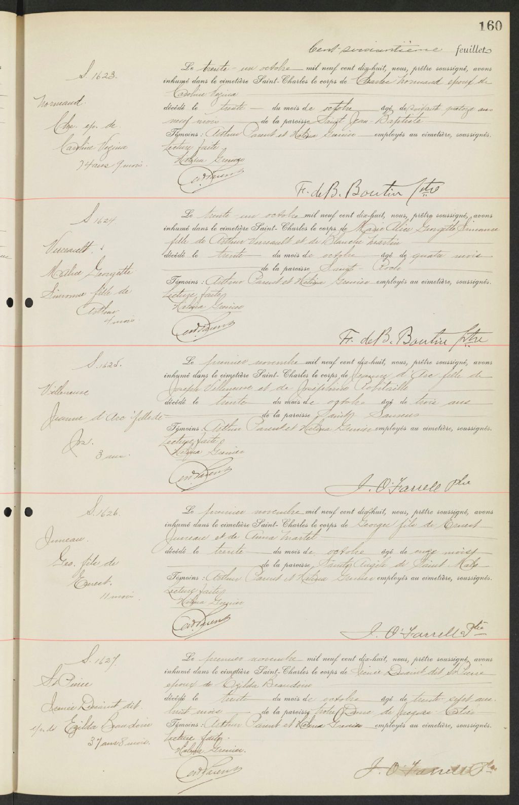 - Registres de la Compagnie du cimetière Saint-Charles contenant les sépultures de certaines paroisses dont Saint-Roch-de-Québec (CE301,S22) ; Notre-Dame-de-Jacques-Cartier (CE301,S33) ; Saint-Sauveur (CE301,S96) ; Saint-Zéphirin-de-Stadacona (CE301,S101) ; Saint-Charles-de-Limoilou (CE301,S117) et Saint-Angèle-de-Saint-Malo (CE301,S118) à partir de 1914