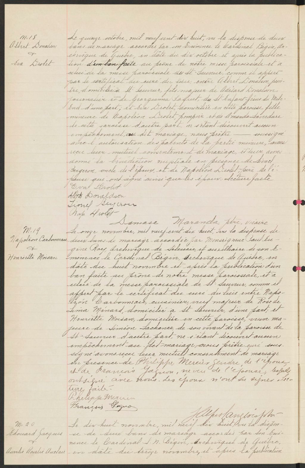 Sacré-Coeur-de-Jésus, 1917-1922, Archives nationales à Québec, Fonds Cour supérieure. District judiciaire de Québec. État civil, (03Q,CE301,S154).