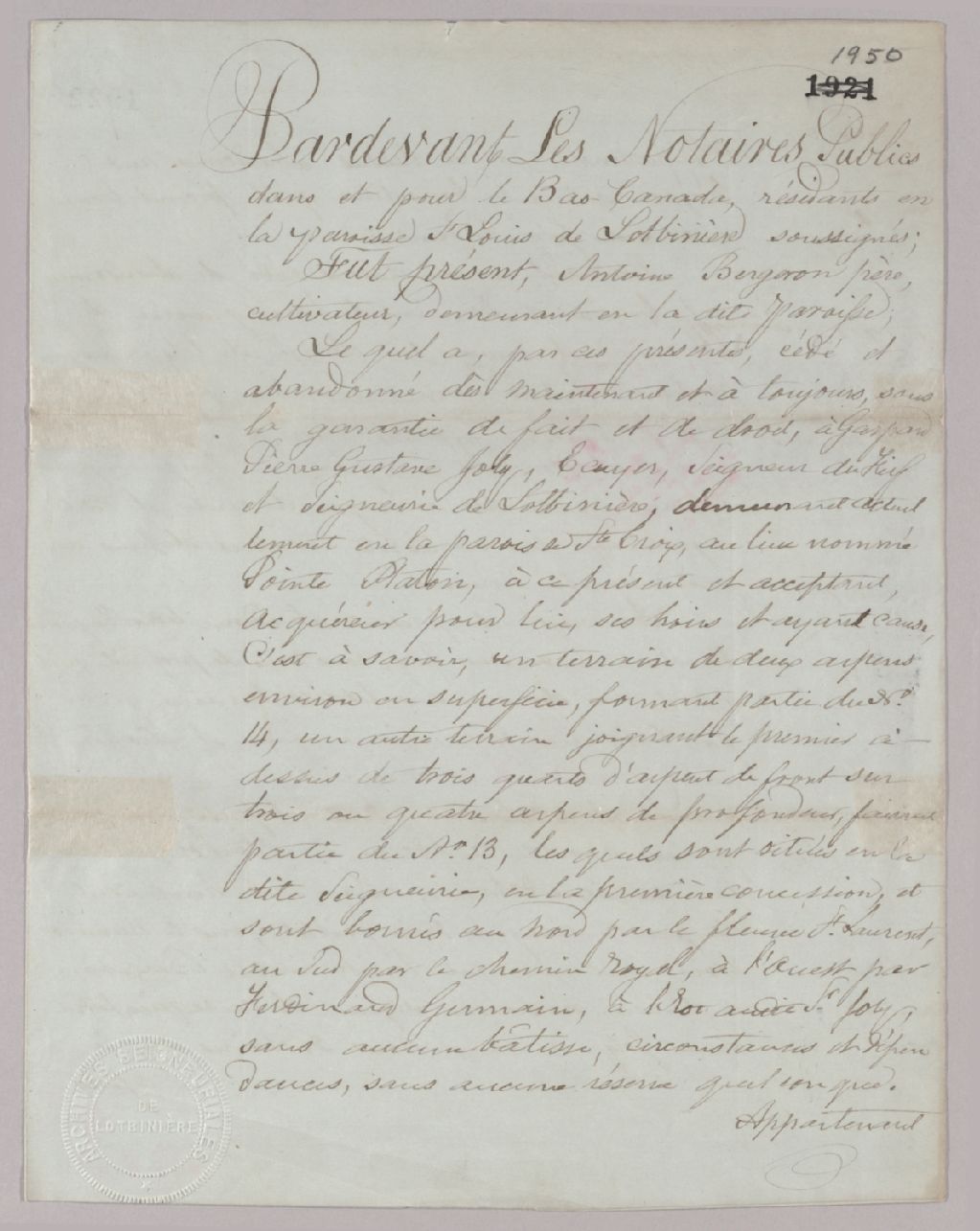 Abandon d’un terrain par Antoine Bergeron à Gustave Joly