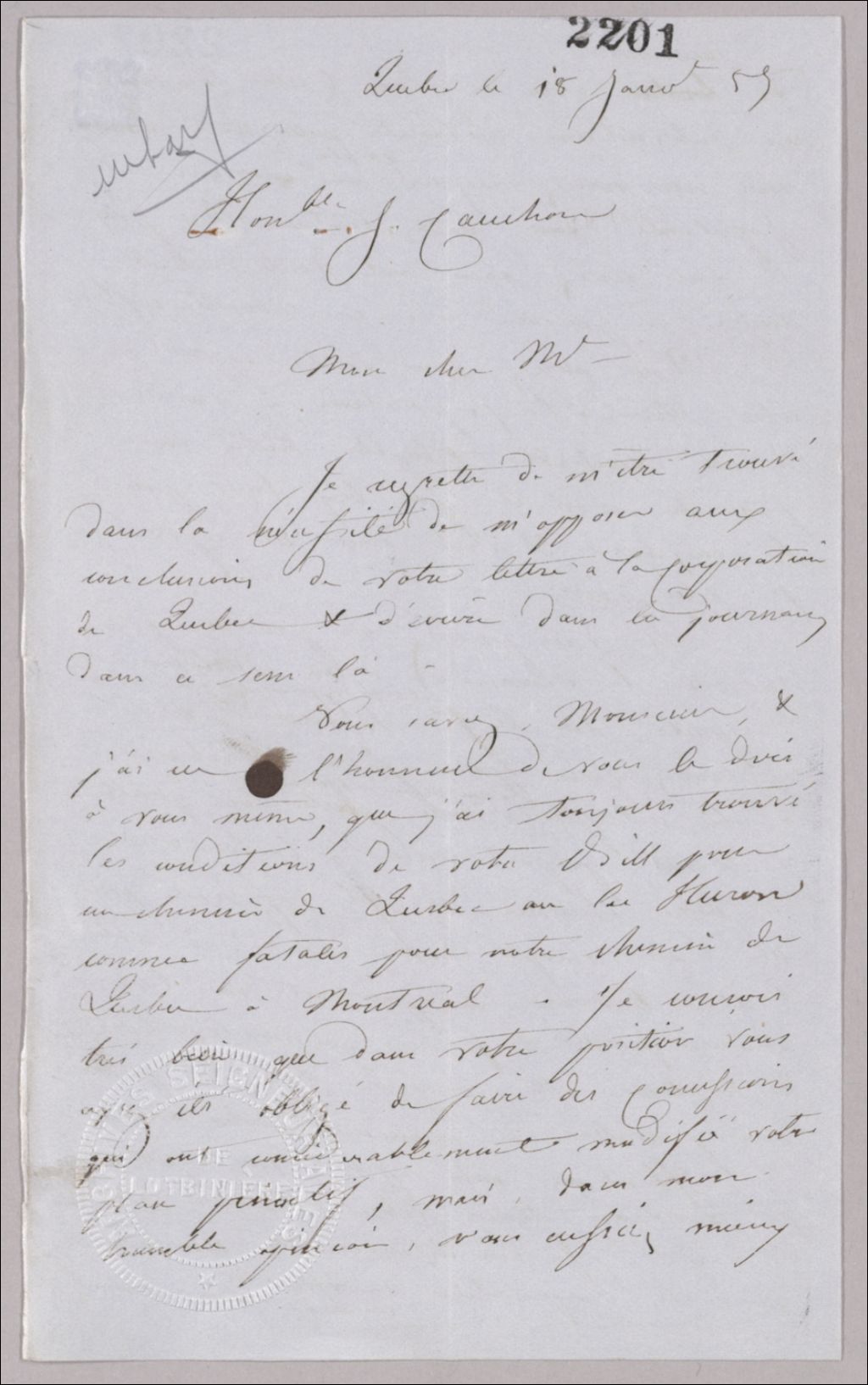 - Brouillon de lettre de Gustave Joly à Joseph Cauchon