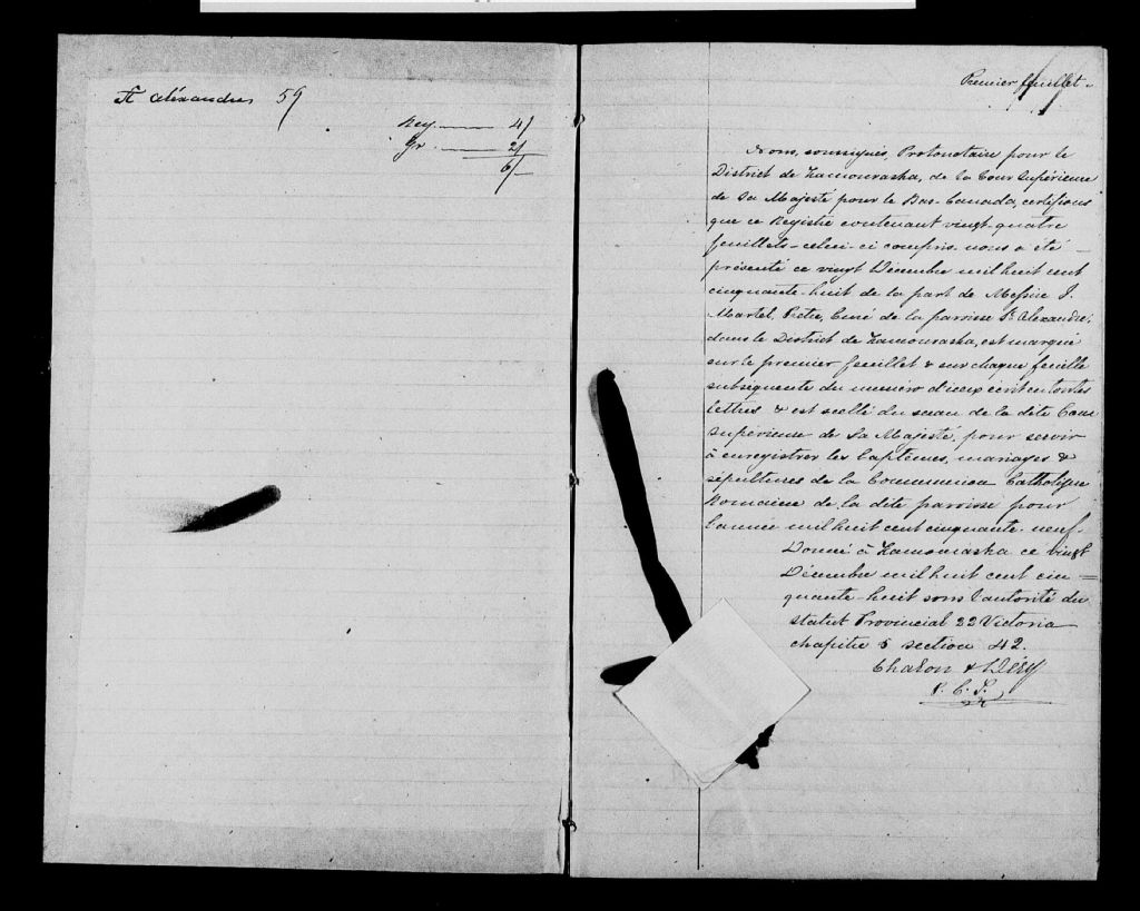 Saint-Alexandre, 1853-1921, Archives nationales à Rimouski, Fonds Cour supérieure. District judiciaire de Kamouraska. État civil, (01R,CE104,S10).