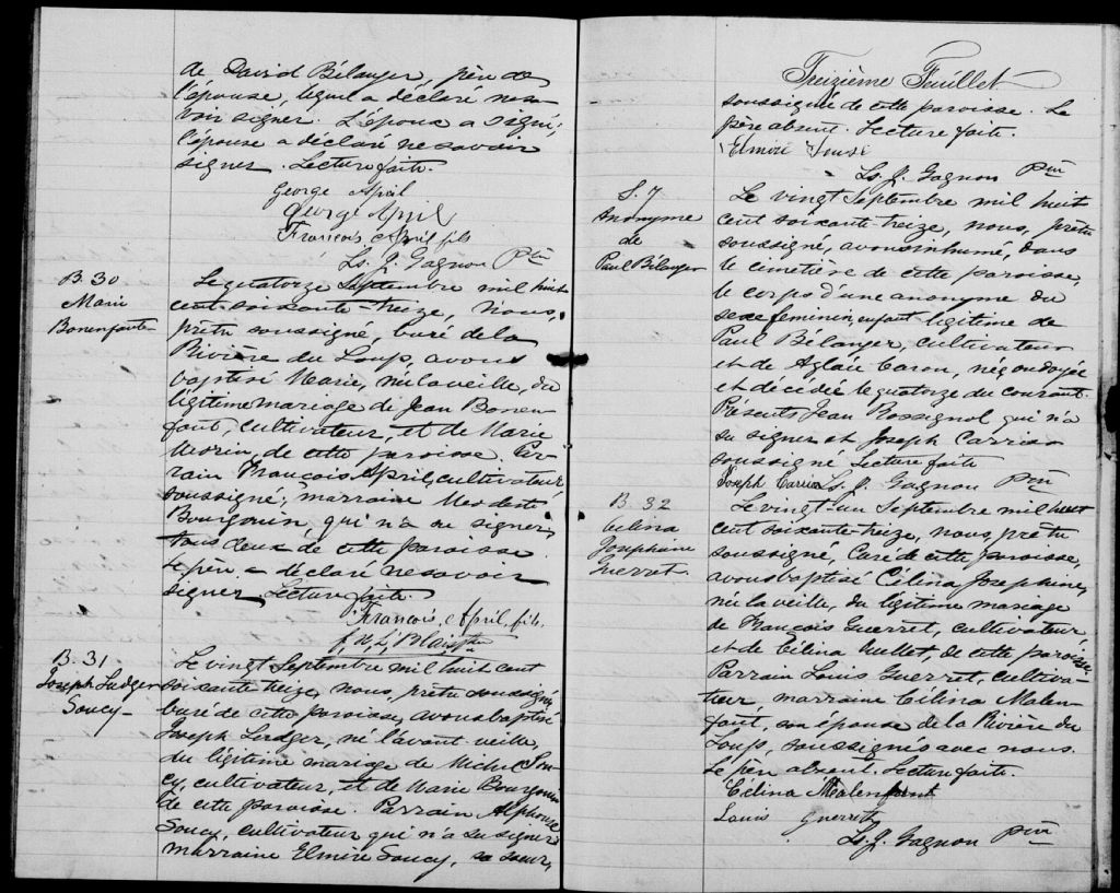 Saint-Antonin, 1858-1921, Archives nationales à Rimouski, Fonds Cour supérieure. District judiciaire de Kamouraska. État civil, (01R,CE104,S13).